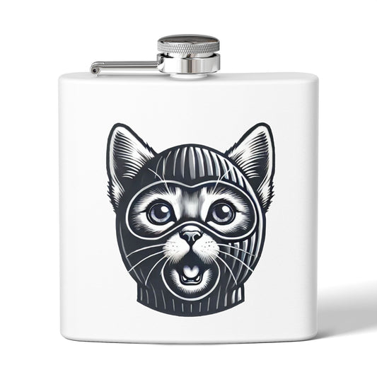 Skitten Funny Cat Mask Flask - 6oz Stainless Steel Hip Flask for Pet Lovers