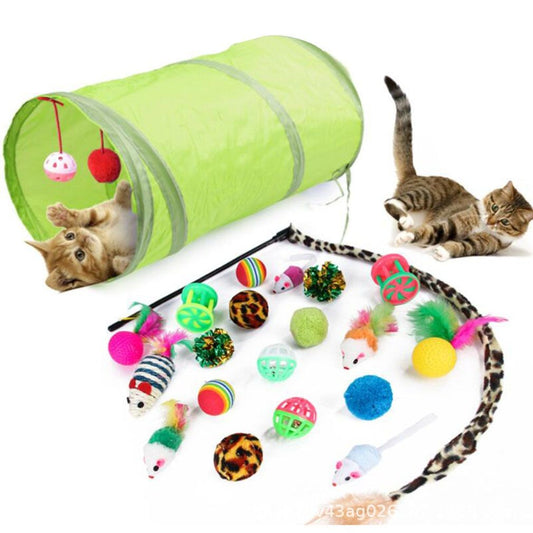 Pet Cat 21 PCS Toy Set Mouse Plush Toys Feather Two Way Tunnel Scratchers Bell Toys Teasing Wands Toys Set